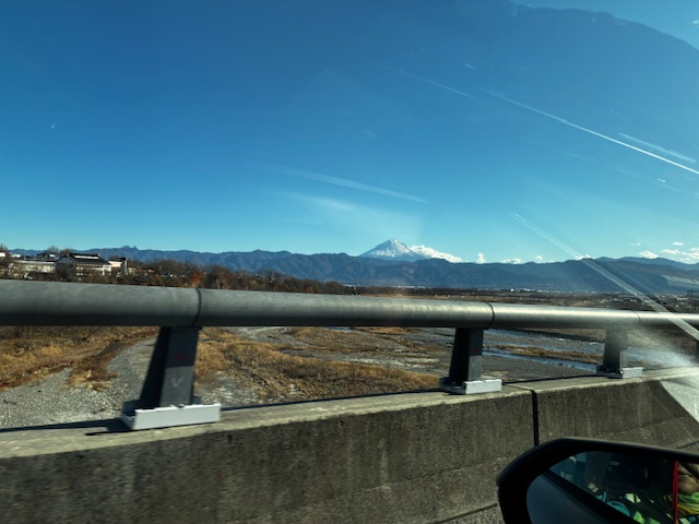 帰り道には富士山は薄紅色の赤富士になり、八ヶ岳は山頂の雪に夕陽があたり、キラキラ輝いた。