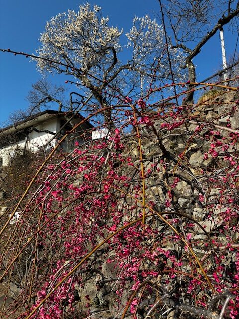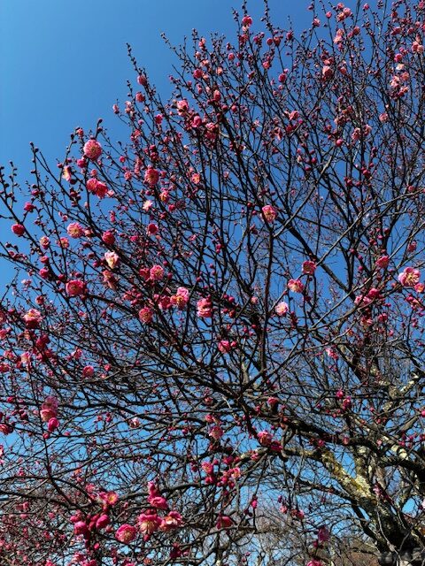 今日のつぶやき 梅園 2026/02/24 fujinaika 甲府の名所 不老園に梅見に行きました。 いにしえの文化力のある名家、奥村さんの別荘だった庭園です。 富士山も見れて起伏のある庭は鹿児島紅梅が華やかに咲いていました。 白い梅はこれからです。梅の香りは淑やかで、素敵です。 梅は梅干し、梅酒と楽しみも提供してくれて素晴らしい植物です。でも、花より団子? 花の下でしっかりおやつをいただいて機嫌の良い私です。