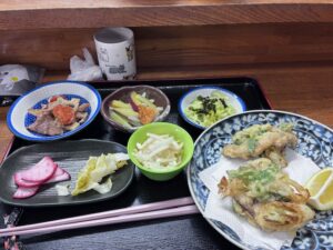 全て手作り、作りたてです。鯵の香味野菜揚げは、ホクホクと香り高く、大満足のひと皿でした。